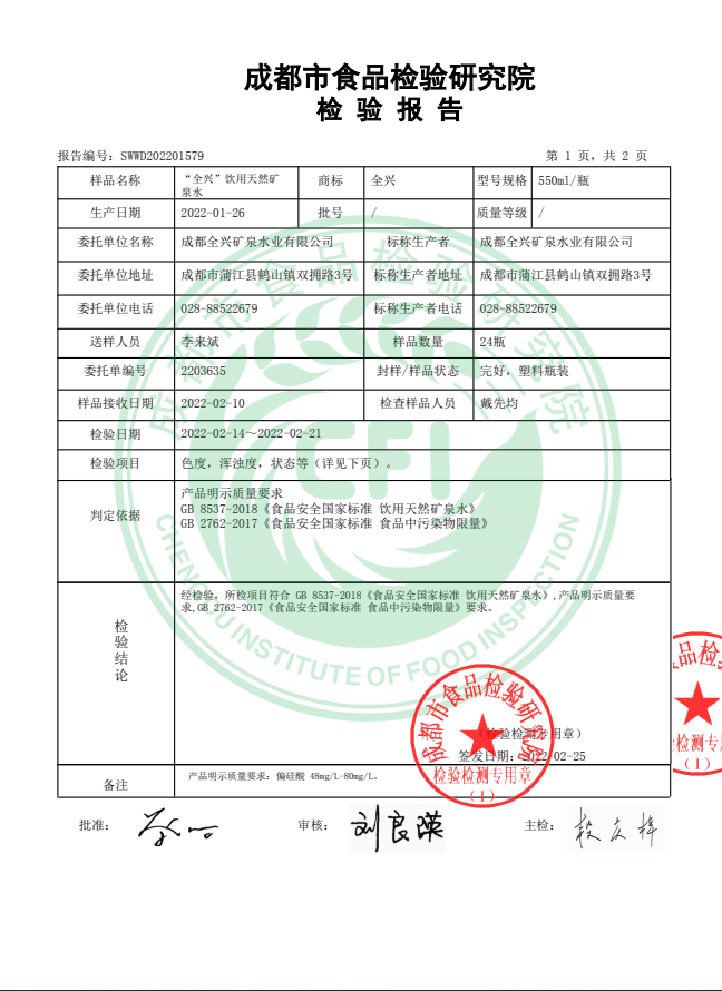成都全興礦泉水業(yè)有限公司成立于1997年8月,占地面積約40畝,員工180余人,位于成都市蒲江縣鶴山鎮(zhèn)雙擁路3號(hào),是一家專(zhuān)業(yè)從事飲用天然礦泉水開(kāi)發(fā)生產(chǎn)的企業(yè)。